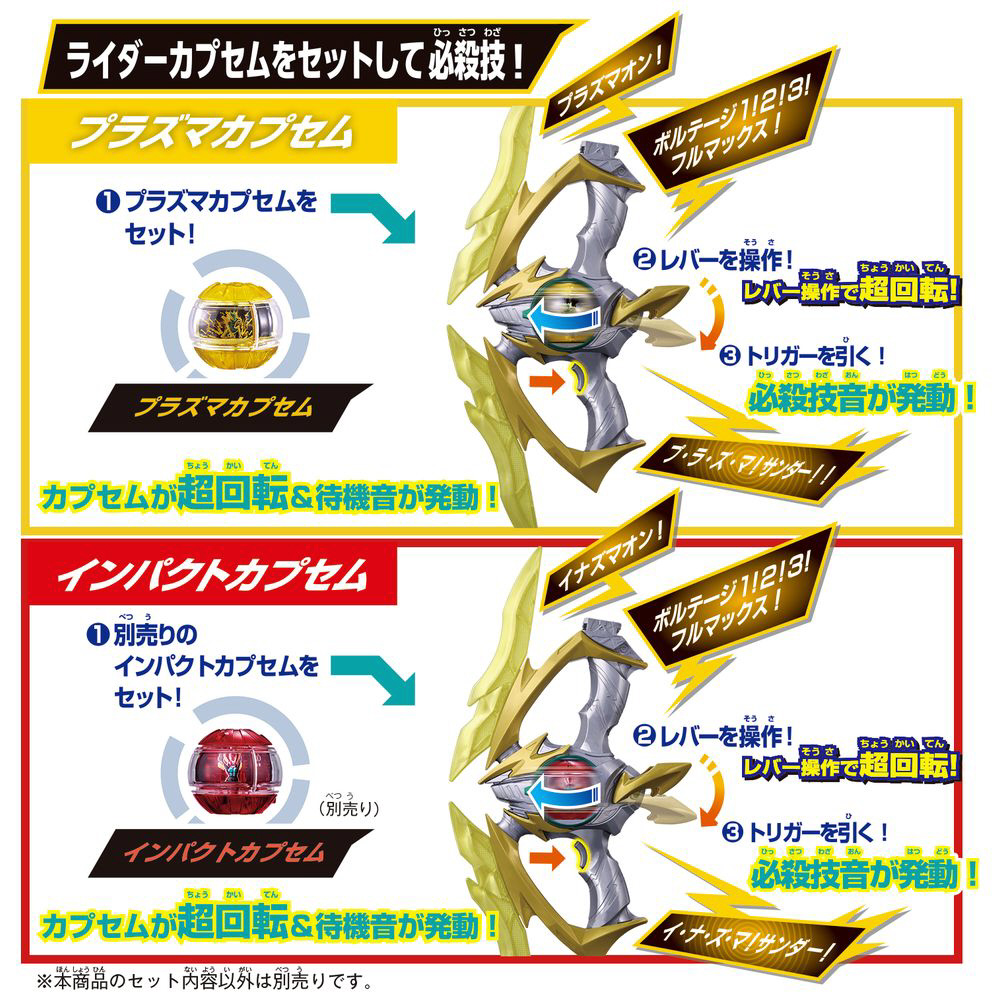 仮面ライダーゼッツ イナズマプラズマのパワーアップ変身に使用する「プラズマカプセム」が付属。
