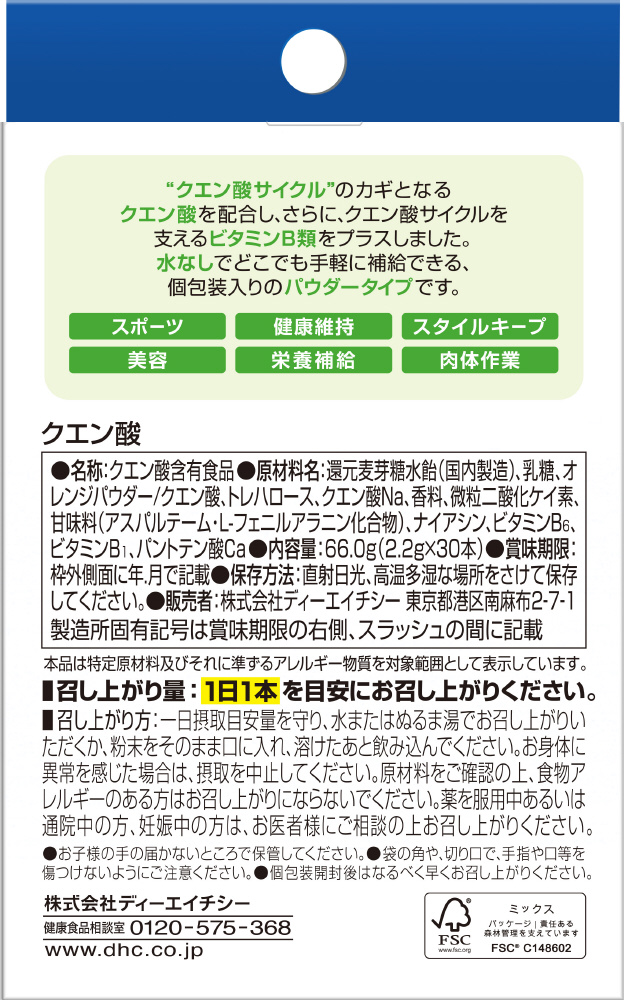 【軽減税商品】クエン酸 30本入