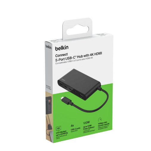 コンテンツクリエイターや生産性の高いプロフェッショナルは、ノートパソコンのUSB-Cポートを拡張して、高解像度モニター、ハードドライブ、ウェブカメラなど最大5台の周辺機器を接続できます。HDMIは最大4K@60Hzのディスプレイをサポートし、転送速度はUSB 3.0の2倍、ホストデバイスへの100W電力供給(PD)で、自宅、オフィス、外出先など、あらゆるシーンで活躍する理想的なハブです。