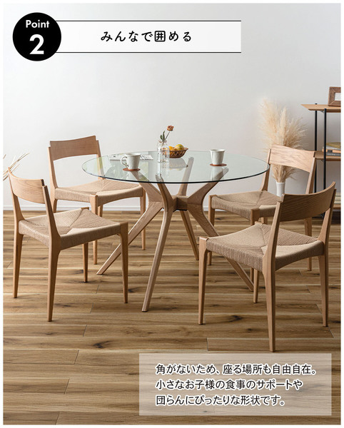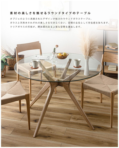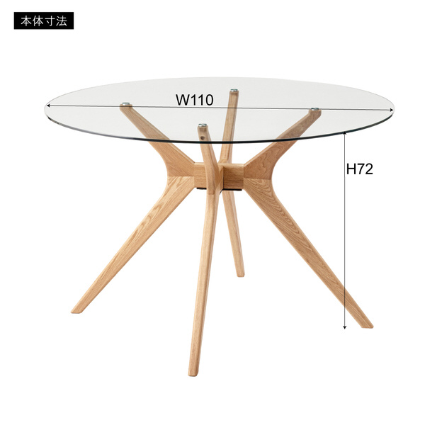 ラウンドガラステーブル(W110×D110×H72cm) ナチュラル RTO-11NA