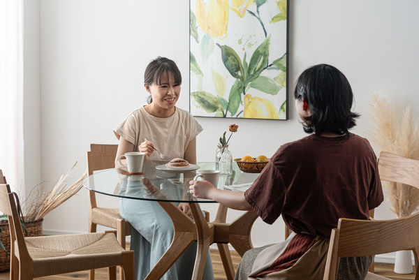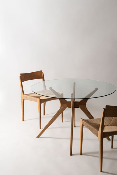 透明感と存在感を両立する、モダンなラウンドガラステーブル