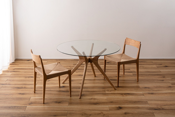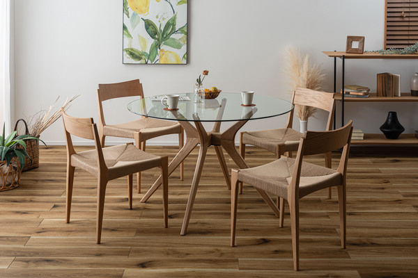 厚み8mmの強化ガラスを使用した天板は、耐久性に優れるだけでなく、開放感のある軽やかな印象を与えてくれます。