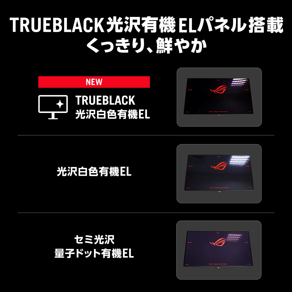 有機ELパネルにより、非常に高いコントラスト比を実現。深みのある黒と鮮やかな色彩表現が可能です。さらに、0.03ms(GTG)の応答速度により、滑らかで低遅延な映像表示をサポート。動きの速いゲームでも快適なプレイ環境を提供します。