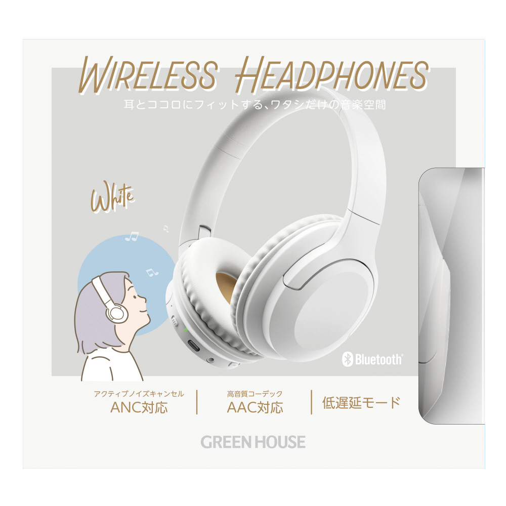 ブルートゥースヘッドホン ホワイト GH-HPBC-WH [ワイヤレス(左右コード) /ノイズキャンセリング対応 /Bluetooth対応 /φ3.5mm ミニプラグ]