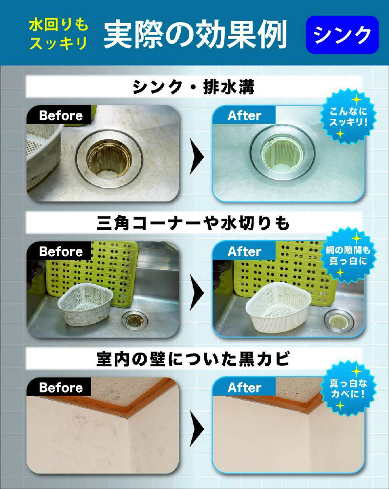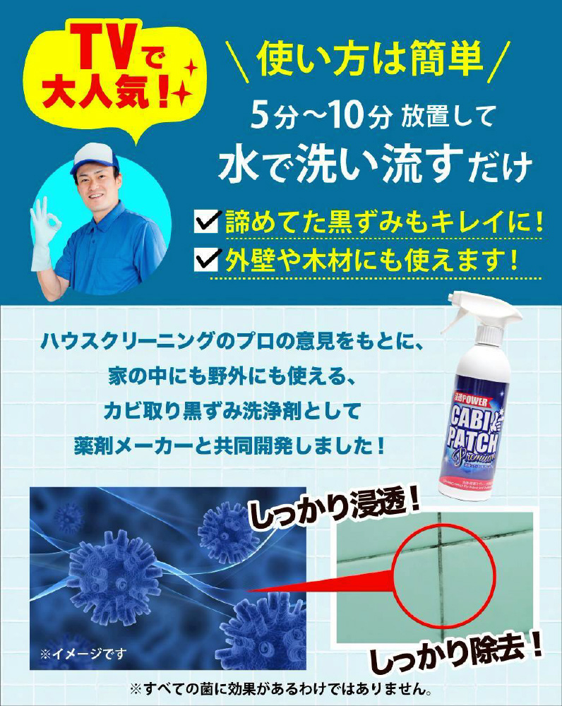 浸透力が決めて!こすらず抗菌&除菌!プロも愛用の洗浄スプレー。水回り、キッチン&バス周りや木材についたカビ汚れなど、屋内屋外の黒カビ黒ズミをスッキリ分解洗浄