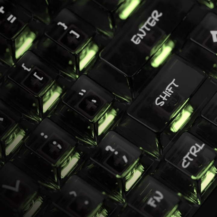 フロステッド加工が施されたPCキーキャップは、RGBライティングを柔らかく拡散し、美しく鮮やかな発色を実現。