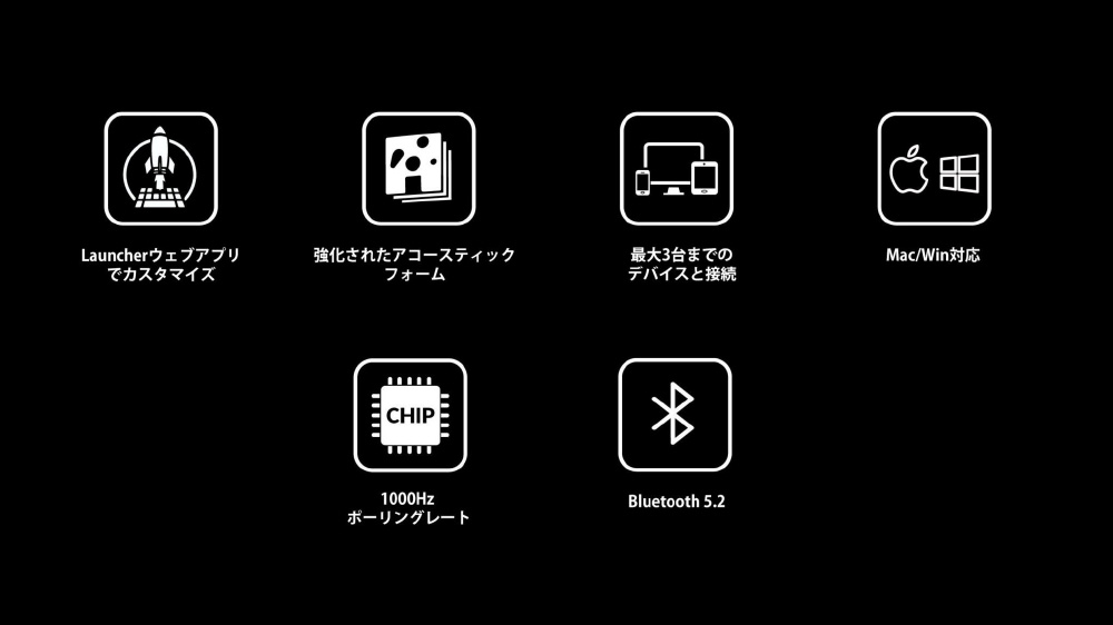 Macレイアウトを採用しながら、Windowsにも対応。Appleキーボードと同じマルチメディアキーやファンクションキーをMacユーザー向けに提供しつつ、より優れた打鍵感を実現している点が際立っています。