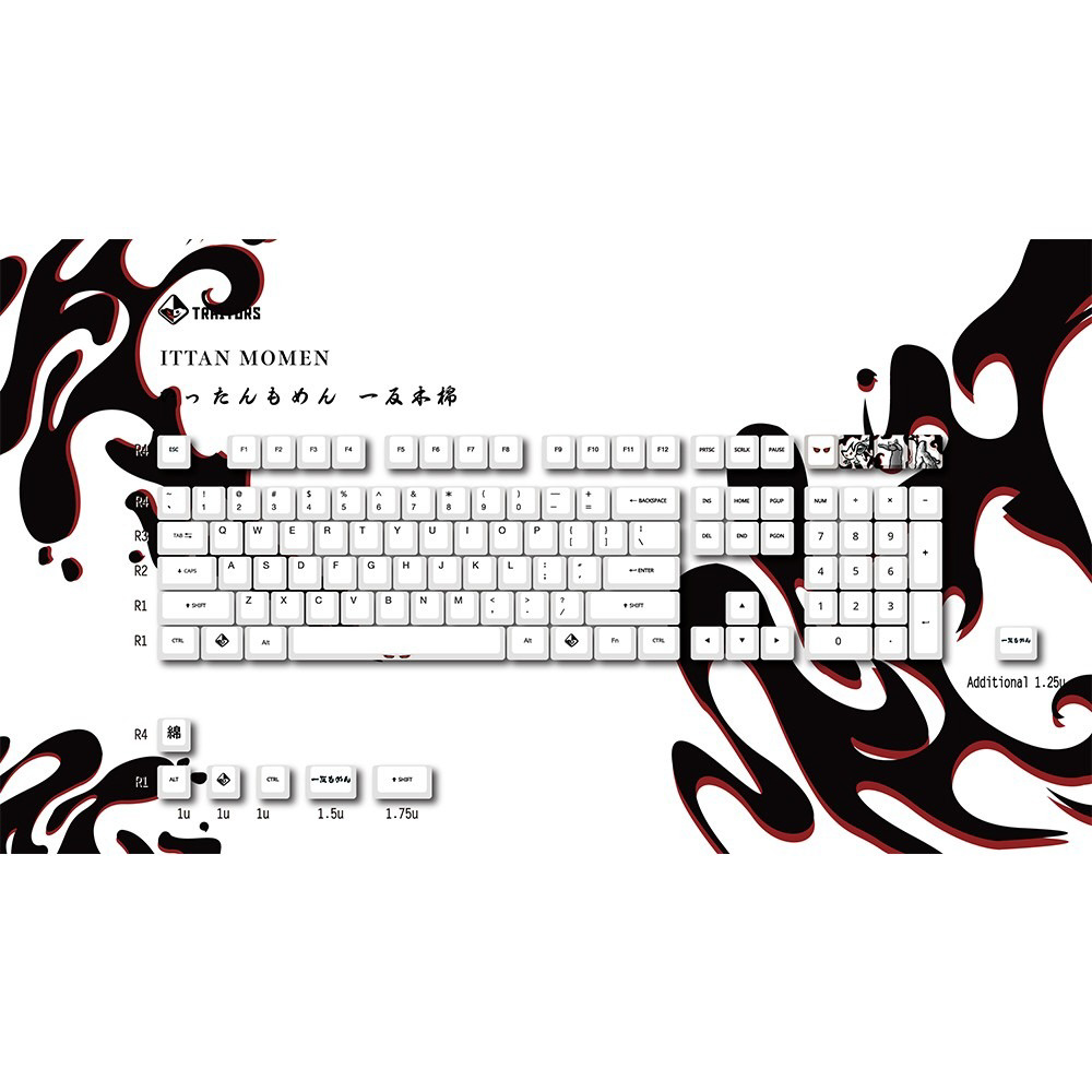 〔キーキャップ〕ANSI-US配列用 115キー 昇華印刷 PBT フルサイズ キーキャップセット Ittan Momen(一反木綿) tr-ittan-momen-115-keycapset