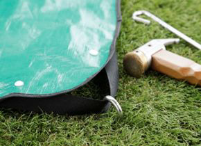 シートを広げ持ち手部をペグで止めればシートを固定できます。