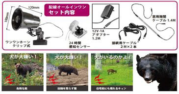 住宅地・耕作地に侵入してくる害獣(熊・猪・キョンなどの鹿)に対してもリアルな番犬の声で威嚇効果があります。
