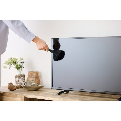 帯電防止繊維入りのブラシがホコリと同時に機器表面の静電気も除去し、ホコリをつきにくくします。