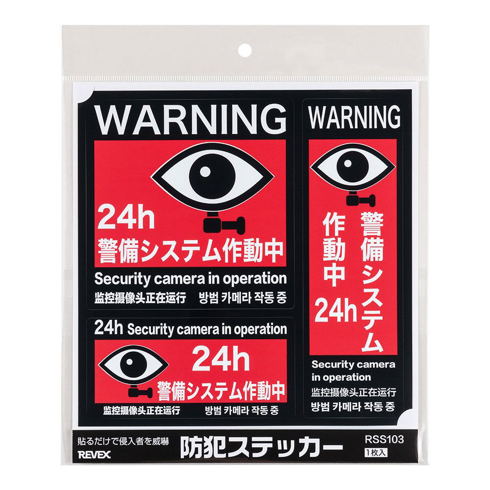 防犯ステッカー「警備システム作動中」4ヵ国語 赤 RSS103