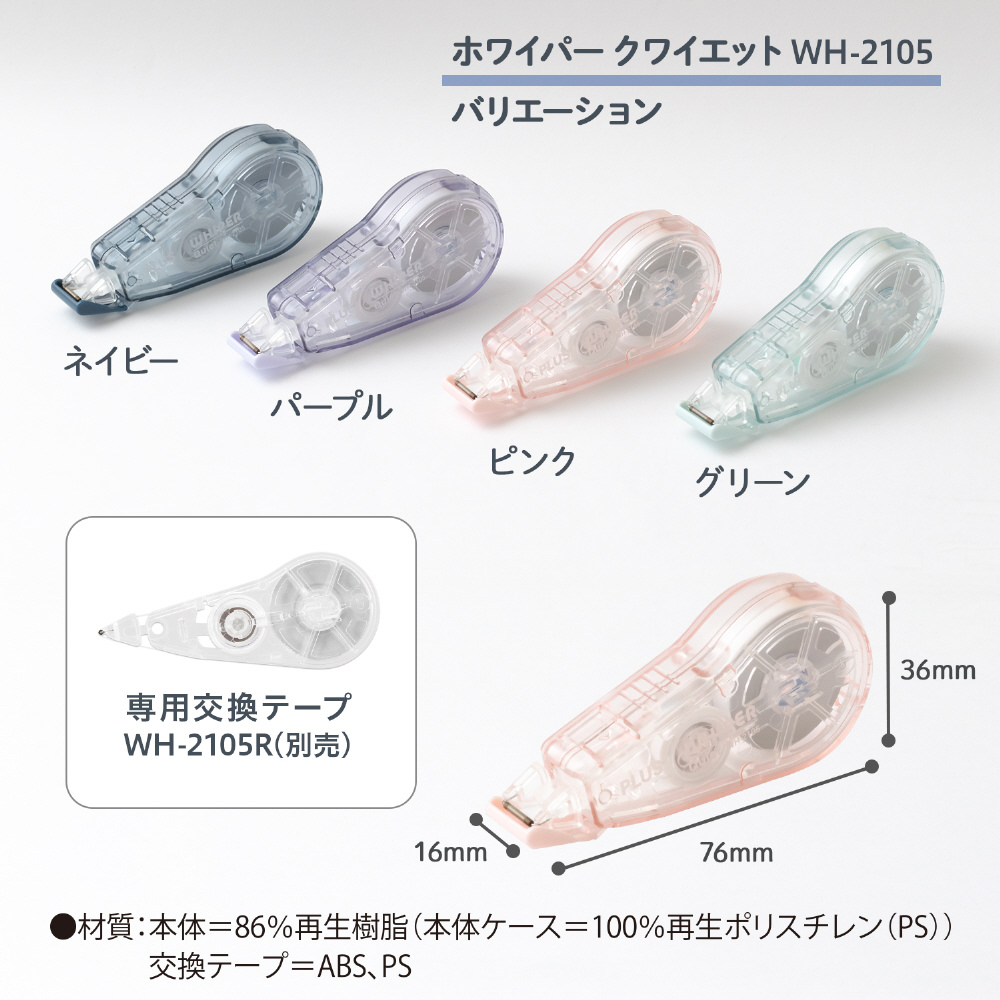 静音設計の修正テープ「ホワイパー クワイエット」の交換テープです。