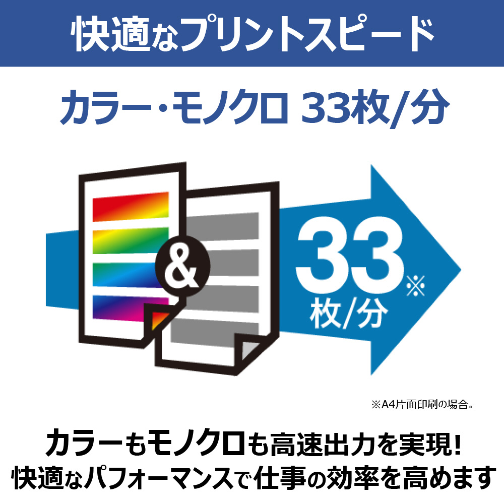 印刷速度 A4カラー:33枚/分、A4モノクロ:33枚/分