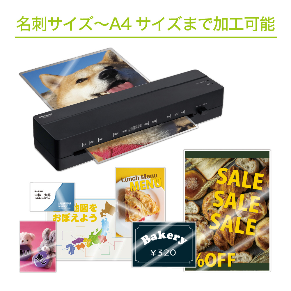 最大ラミネート幅:230mm(最小は名刺サイズ)