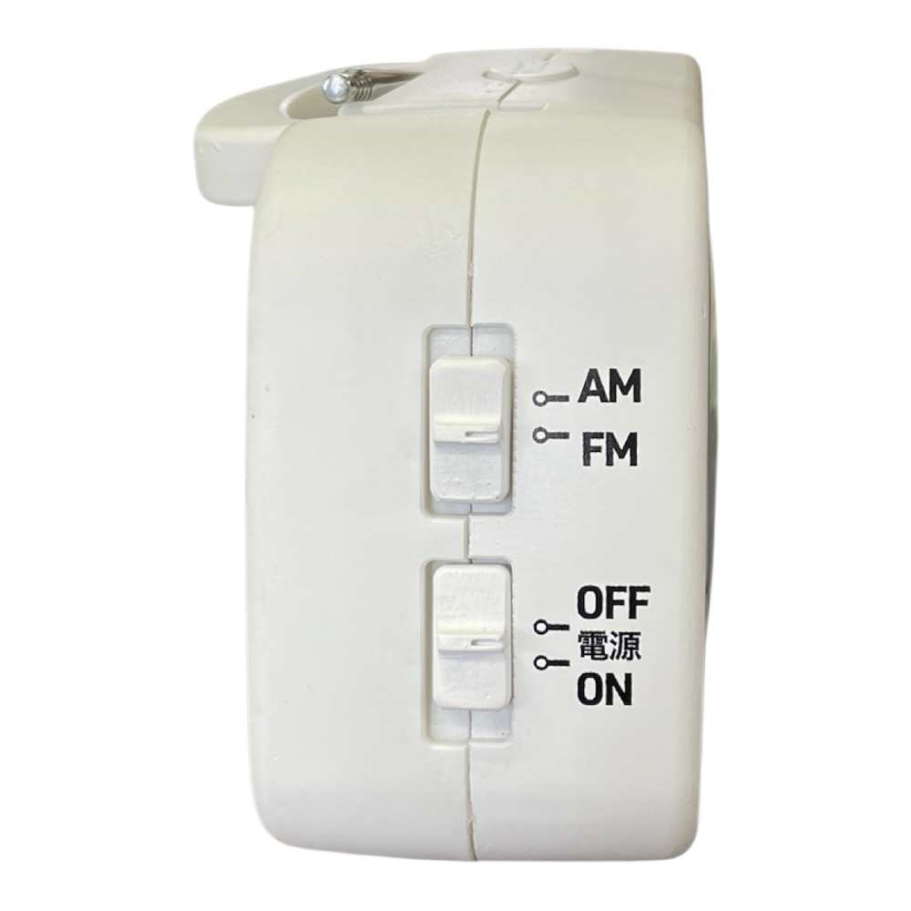 AM/FMラジオ、時計、アラームのシンプルな3つの機能をのみを搭載した卓上ハンディラジオです。