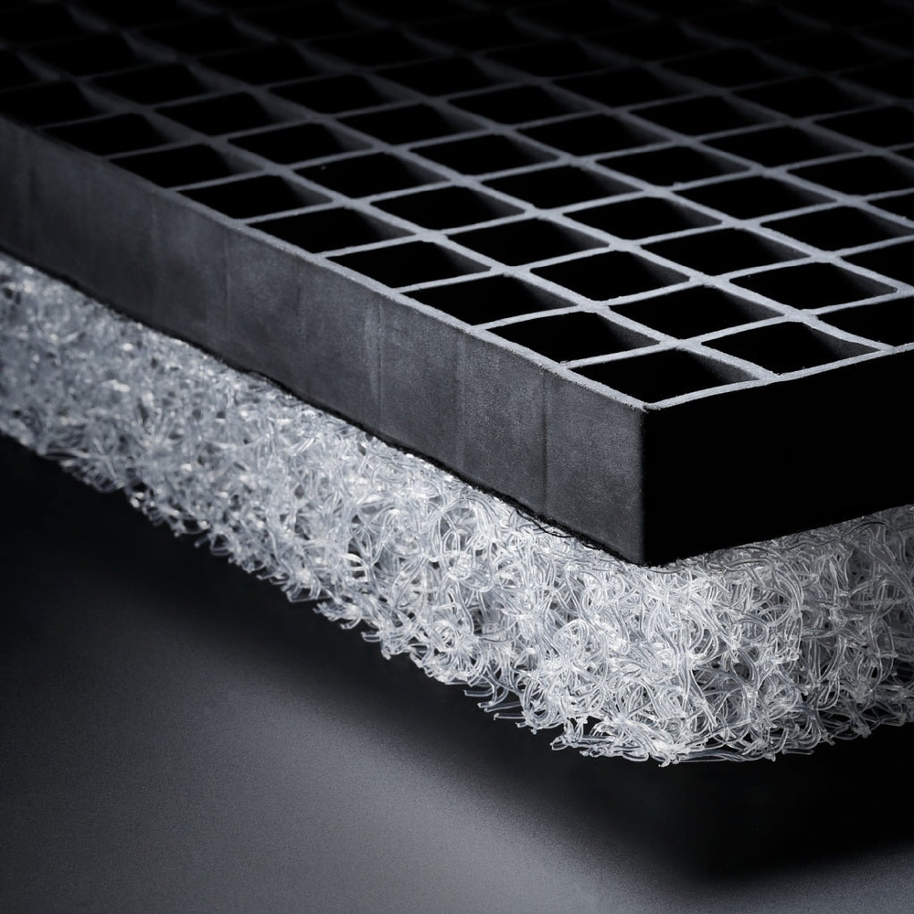 四方格子構造が作り出す289子もの格子点。この点が、お尻を支えることで広範囲で圧力を分散します。