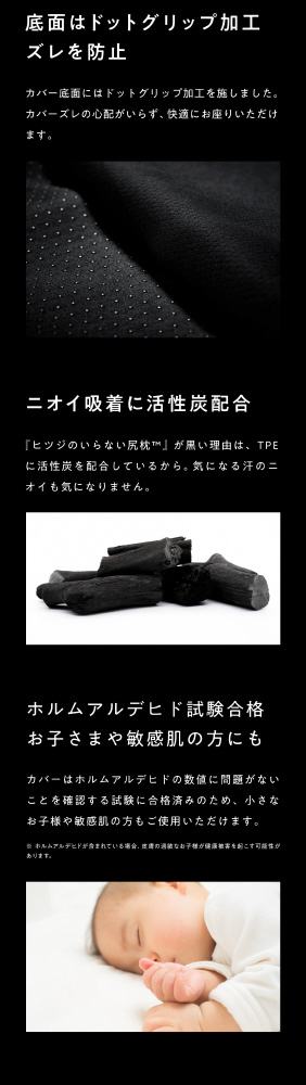 カバーの底面にはどっとグリップ加工を施しました。カバーズレの心配がいらず、快適にお座りいただけます。