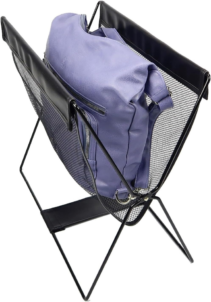 鞄や雑誌など、ついつい床に置いてしまいがちな物の一時置きに便利な、サッと広げて使える荷物入れです。