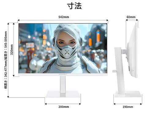 USB-C接続 PCモニター ホワイト JN-238IPS120F-HSPC6-W [23.8型 /フルHD(1920×1080) /ワイド /120Hz]