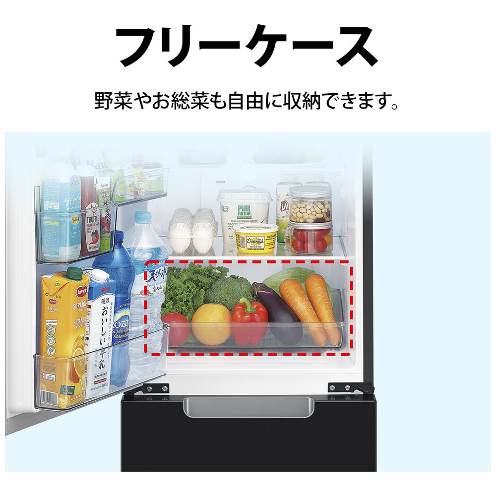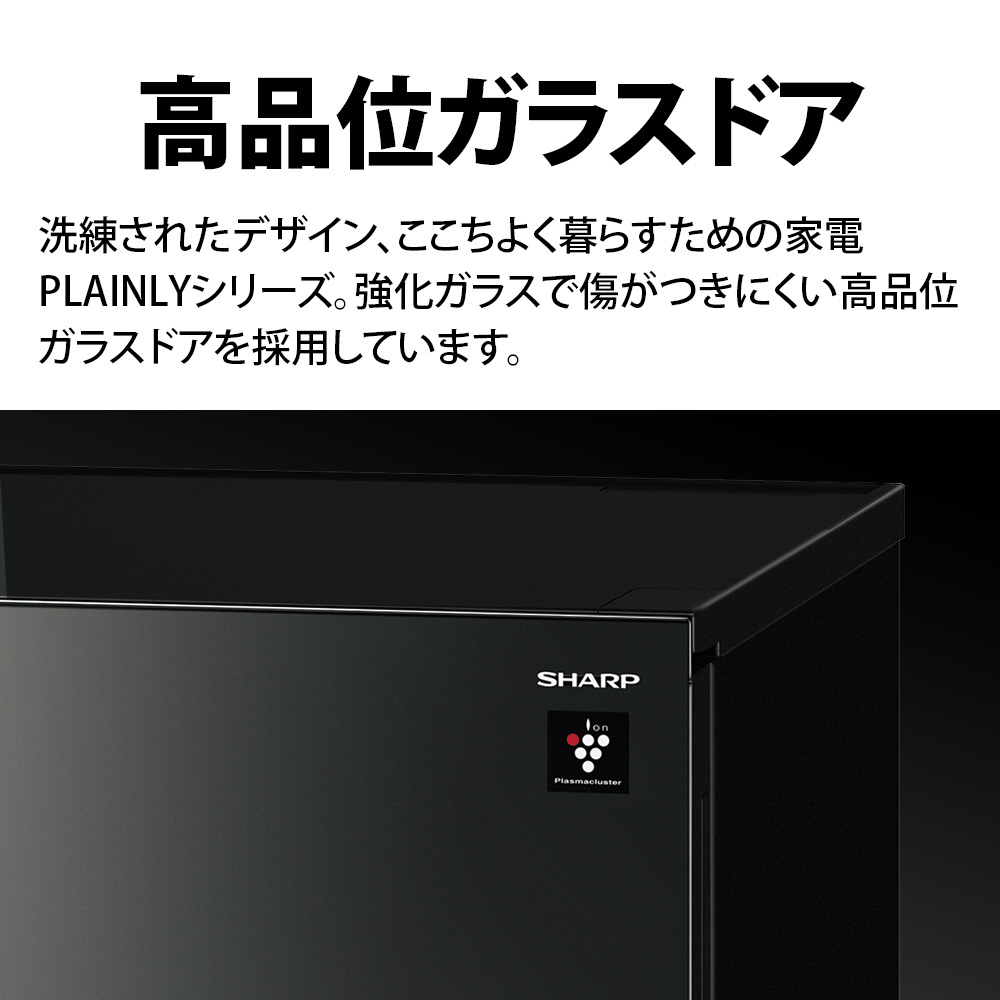 冷蔵庫 PLAINLY ピュアブラック SJ-GD15R-B [幅49.5cm /152L /2ドア /右開き/左開き付け替えタイプ /2025年]