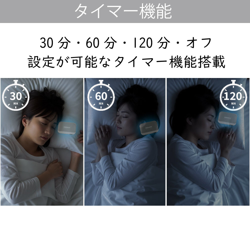 本製品ホワイトノイズ機能は、心拍数と呼吸数を自然に整え、リラックス状態へと導きます。 枕の下で静かに響く一定のホワイトノイズは、忙しい頭の中の雑念をかき消し、穏やかな眠りへの誘導してくれます。