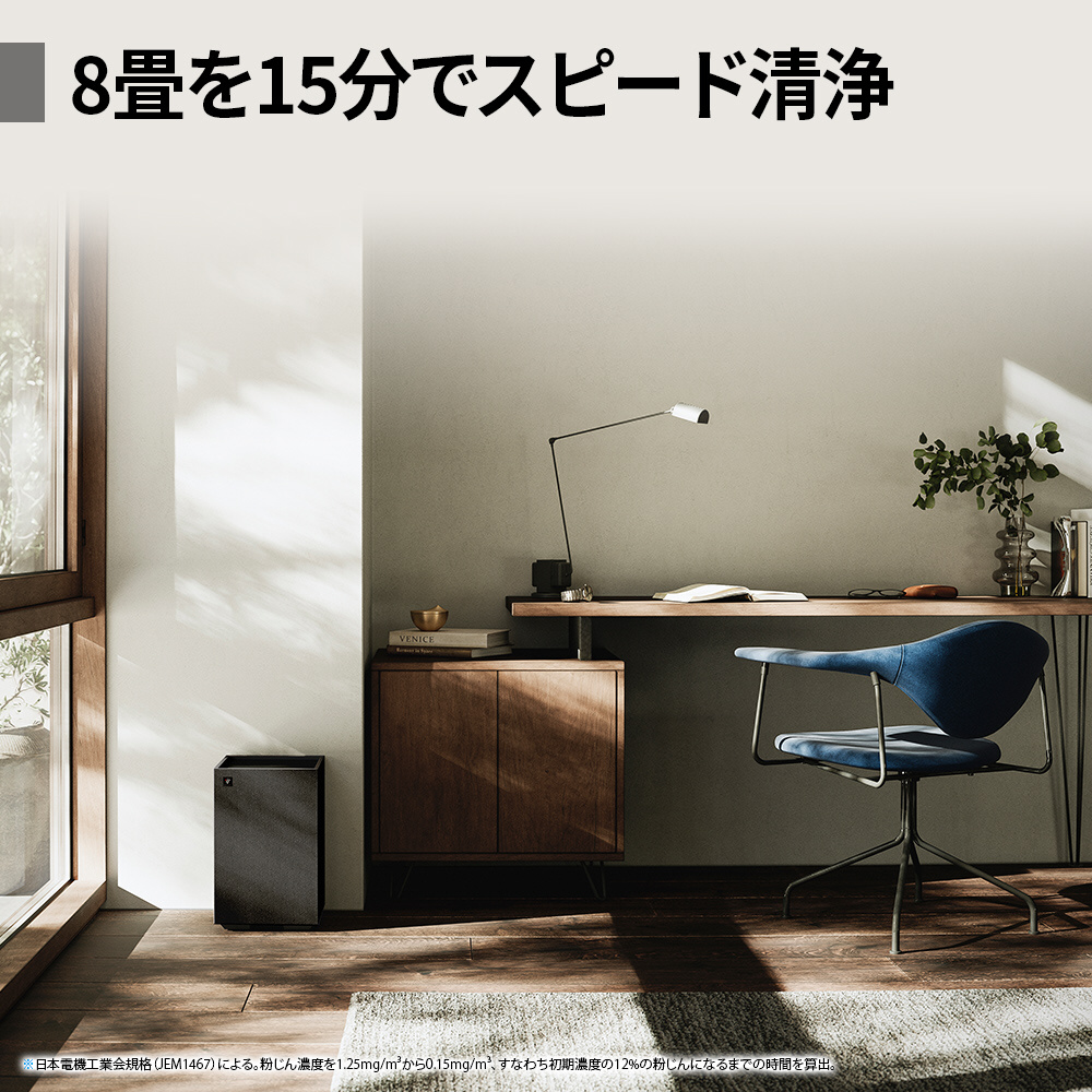 省スペースに置けるサイズでも、8畳で使う場合はわずか15分で清浄。