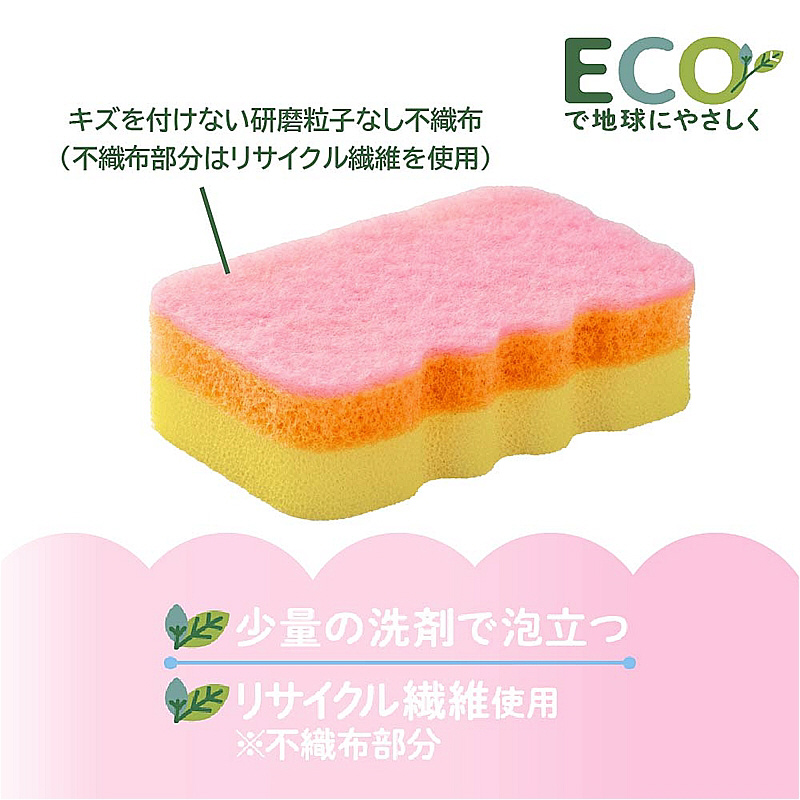 リサイクル繊維を使用した環境配慮型の食器洗い用スポンジ。