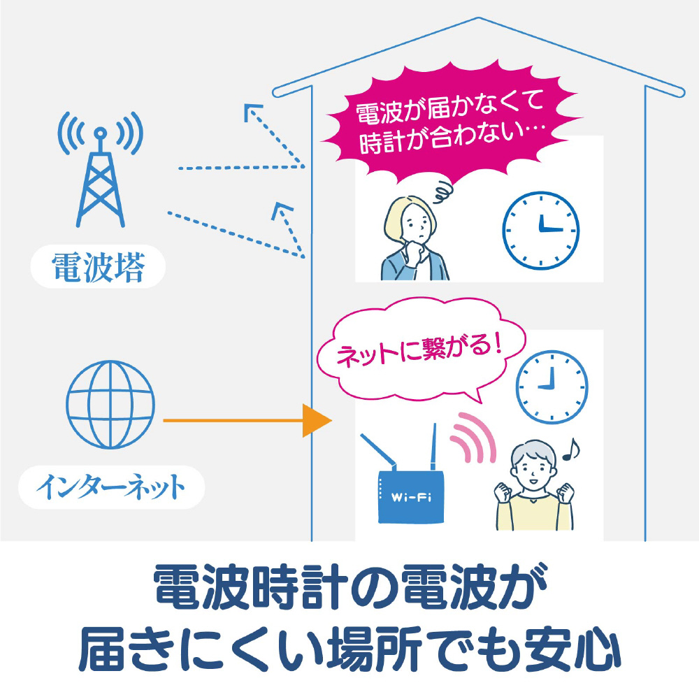 ・本製品はインフラが整った現代社会ならではのルーター/スマホなど「デジタルデバイスを介したインターネットの時刻(NTP)を取得」して時刻を同期させる時計です。