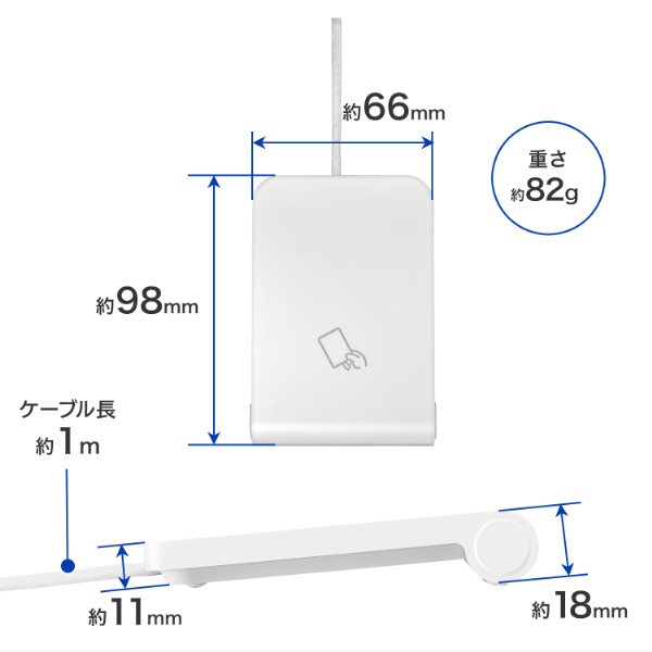 本体サイズmm 約66(W)×18(H)×98(D)mm(ケーブル、ゴム足、カードホルダー除 く)