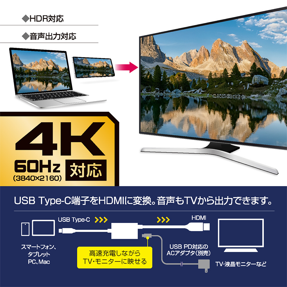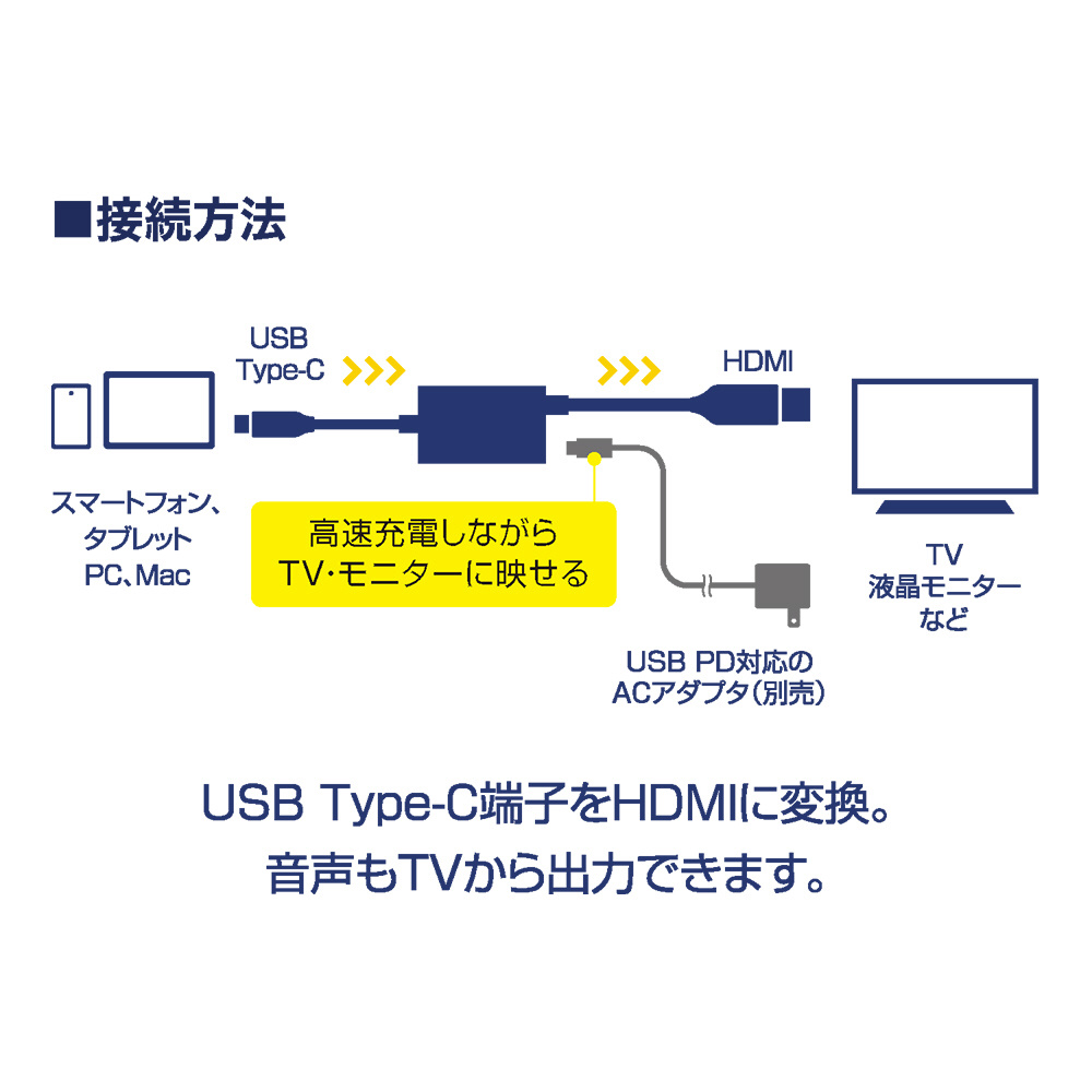 「USB PD対応USB Type-C - HDMI変換ケーブル 4K60Hz対応」