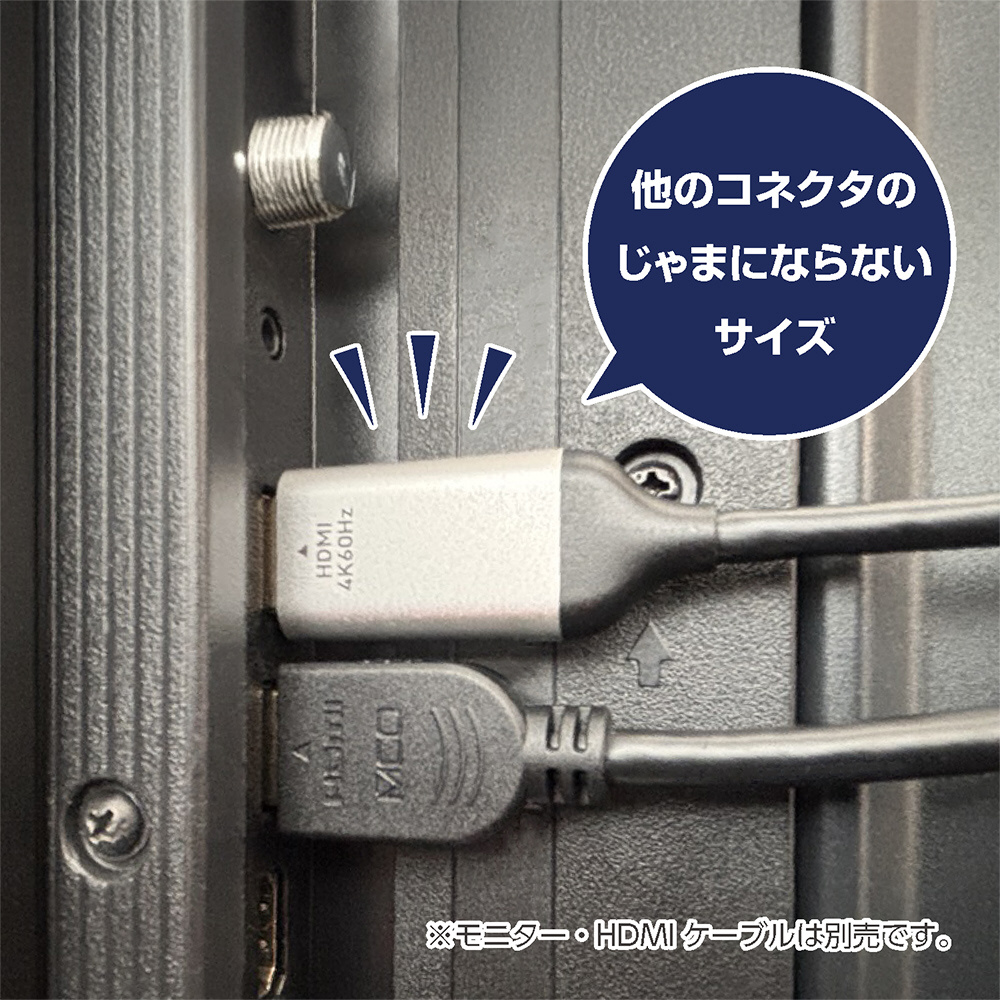 HDMI端子やType-C端子は通常サイズとなり、他のコネクタの邪魔になりません。