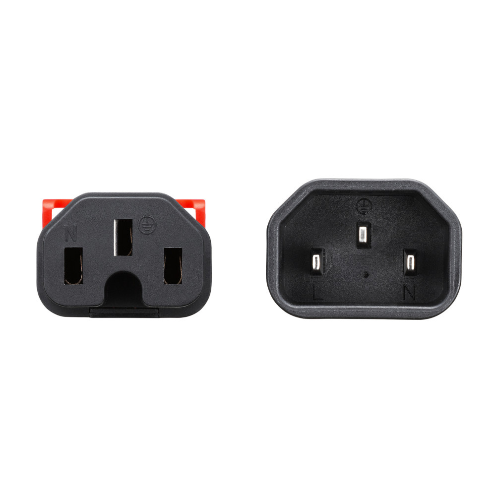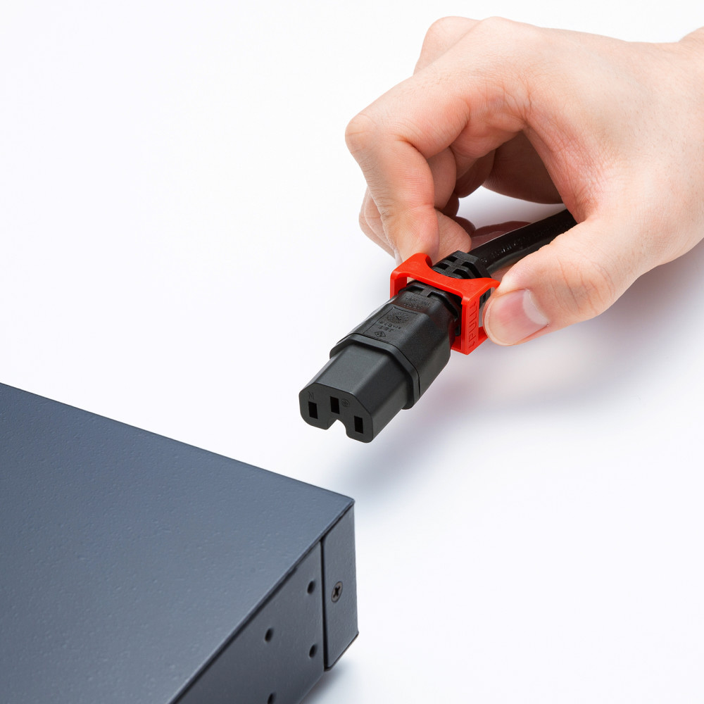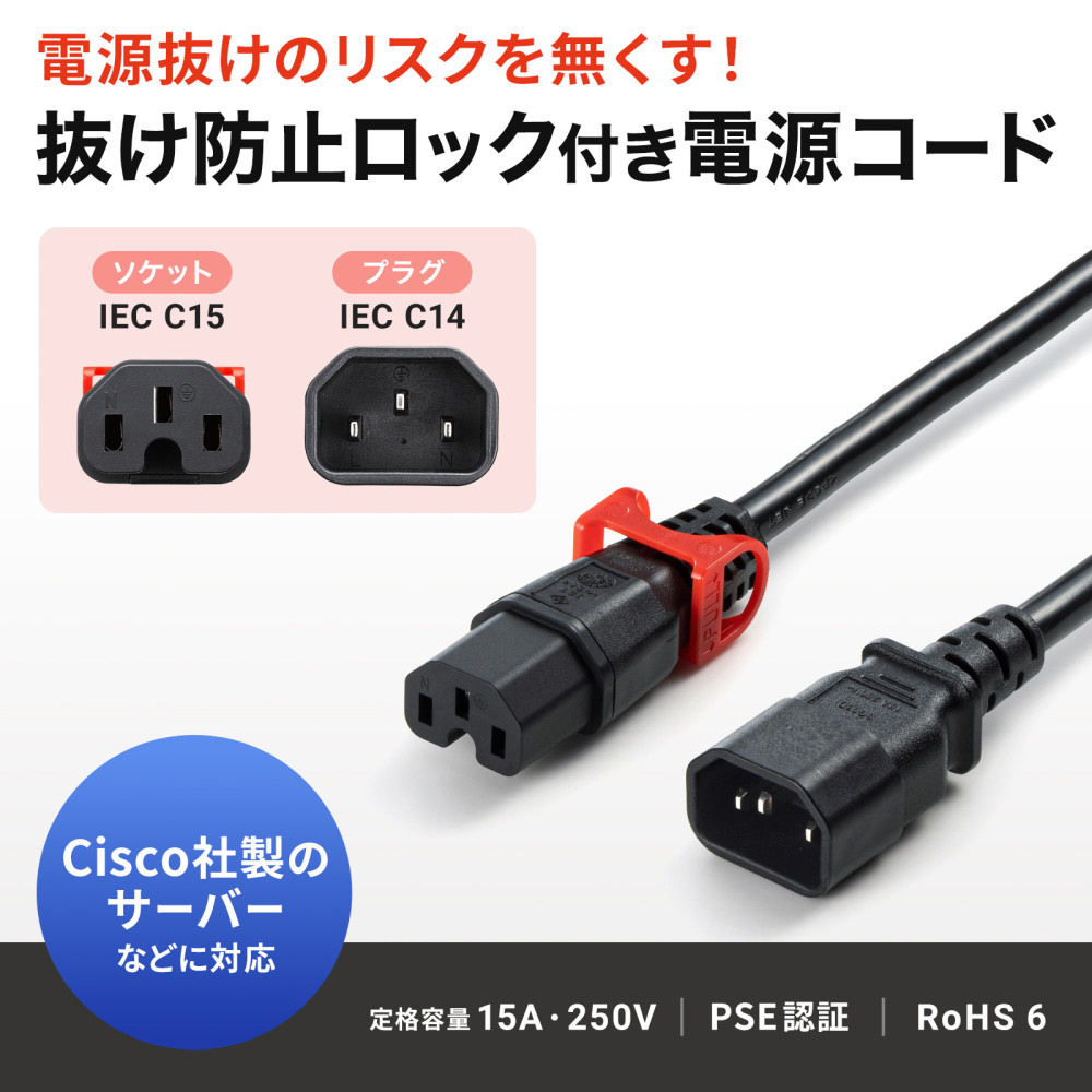 ソケット側(C15)の内部構造だけでロックするため、機器側の加工や特殊なインレットは不要です。