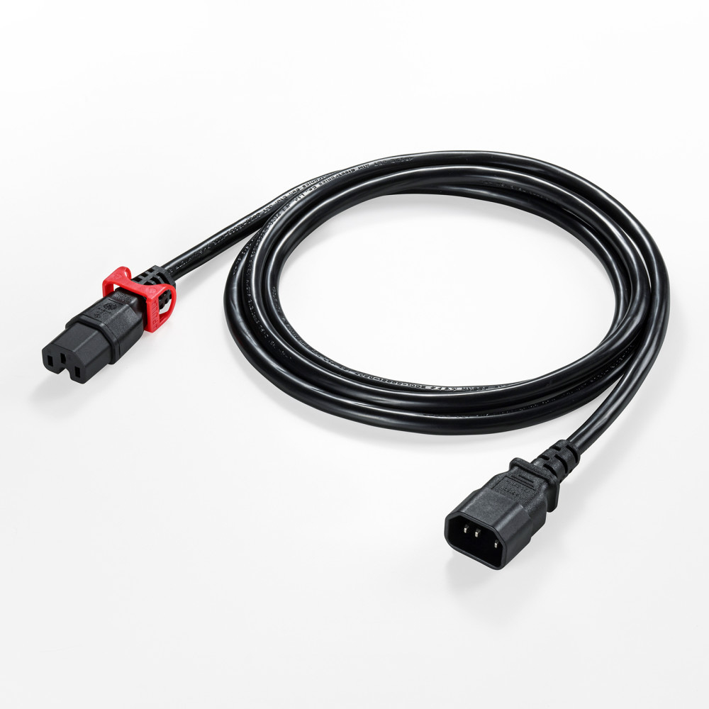 抜け防止 ロック電源ケーブルは、データーセンターや医療機器など電源が抜けては困る機器において、抜け留め金具や結束バンドなどの取付作業なしに工具不要でワンタッチロックが掛かる電源ケーブルです。
