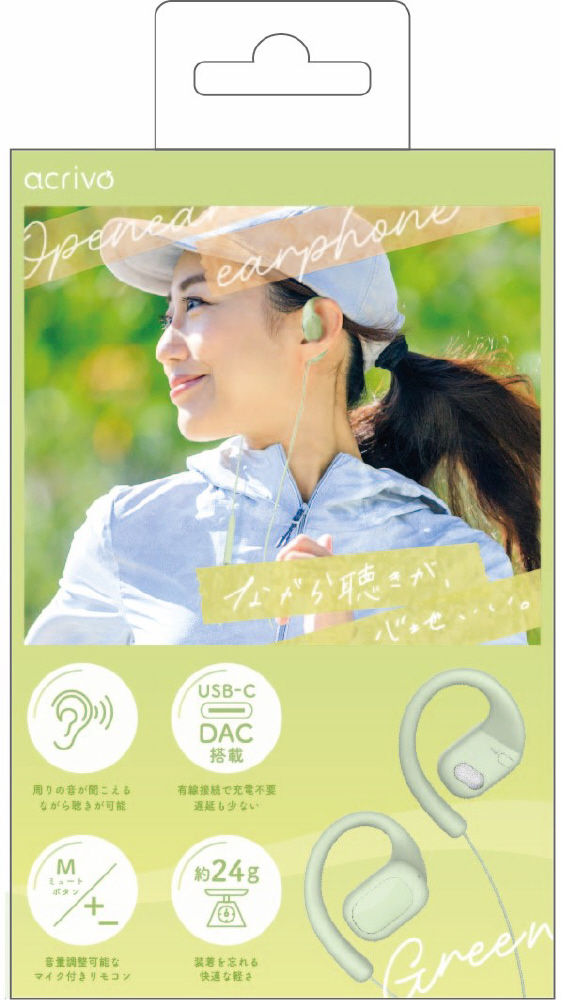 イヤホン 耳かけ型 USB Type-C acrivo(アクリボ) グリーン ACR-ACX1 GR [USB]