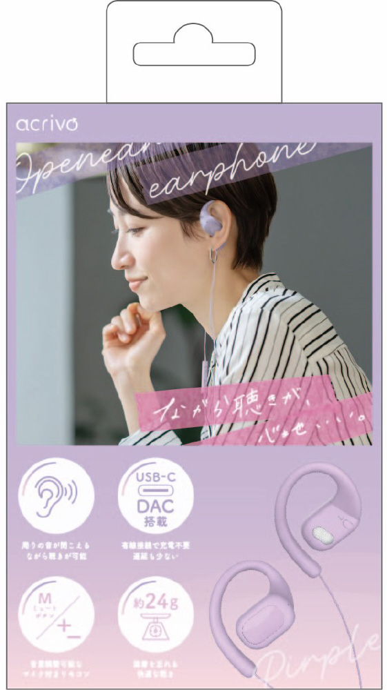 イヤホン 耳かけ型 USB Type-C acrivo(アクリボ) パープル ACR-ACX1 PU [USB]
