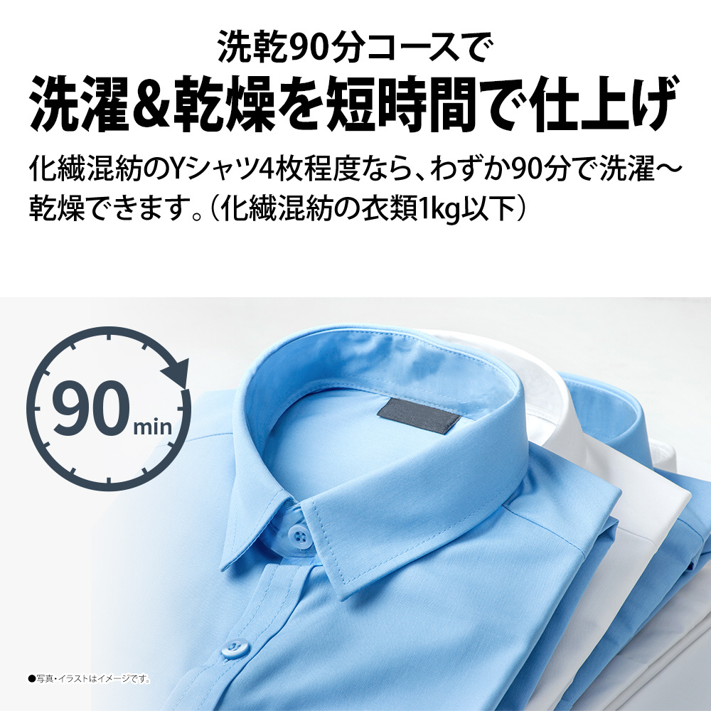 少量の洗濯物をすばやく洗濯・乾燥90分で仕上げる