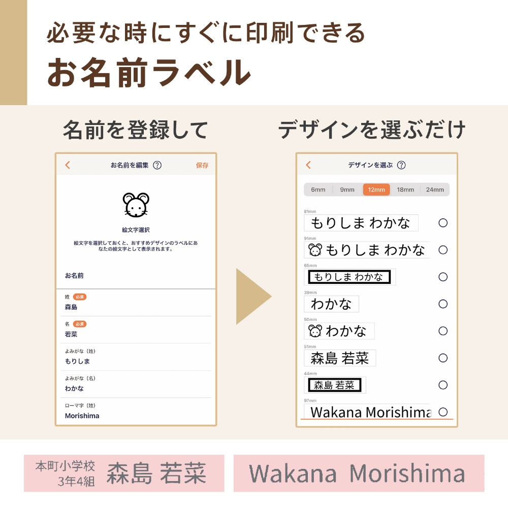 キーボードを無くし、使い慣れたスマホでデザインをするコンパクトなラベルライター。最大印刷幅:12mm(18mm幅テープ使用時)