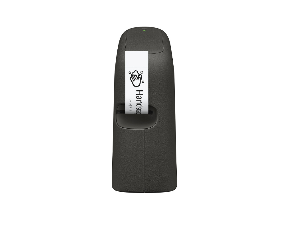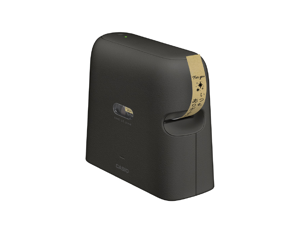 スタイリッシュなブラックモデル。24mm幅テープ対応で表現力が広がる。