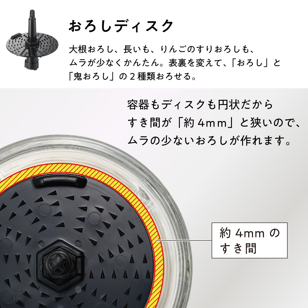 手作業の時のように目立てを気にせず、だいこんやながいもなどをおろせます。