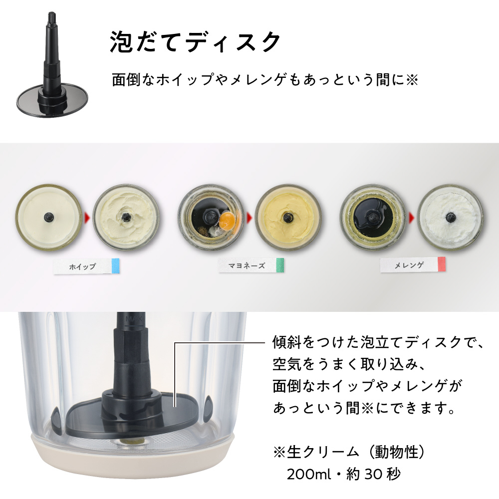 面倒な生クリームの泡立てやメレンゲ作りが数秒でつくれます。