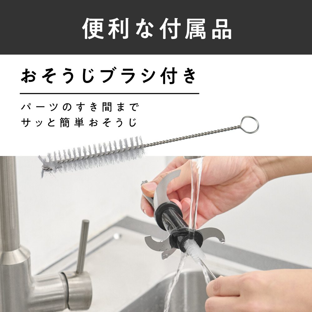 ●ブレードやブレード軸の裏側の掃除もしやすい、お掃除ブラシ付き。