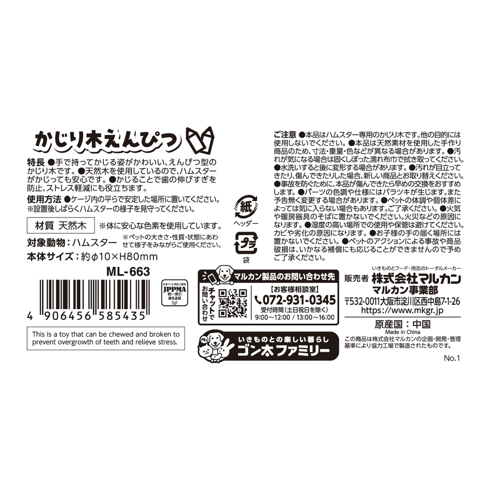 ・手に持ってかじる姿がかわいい、えんぴつ型のかじり木です。