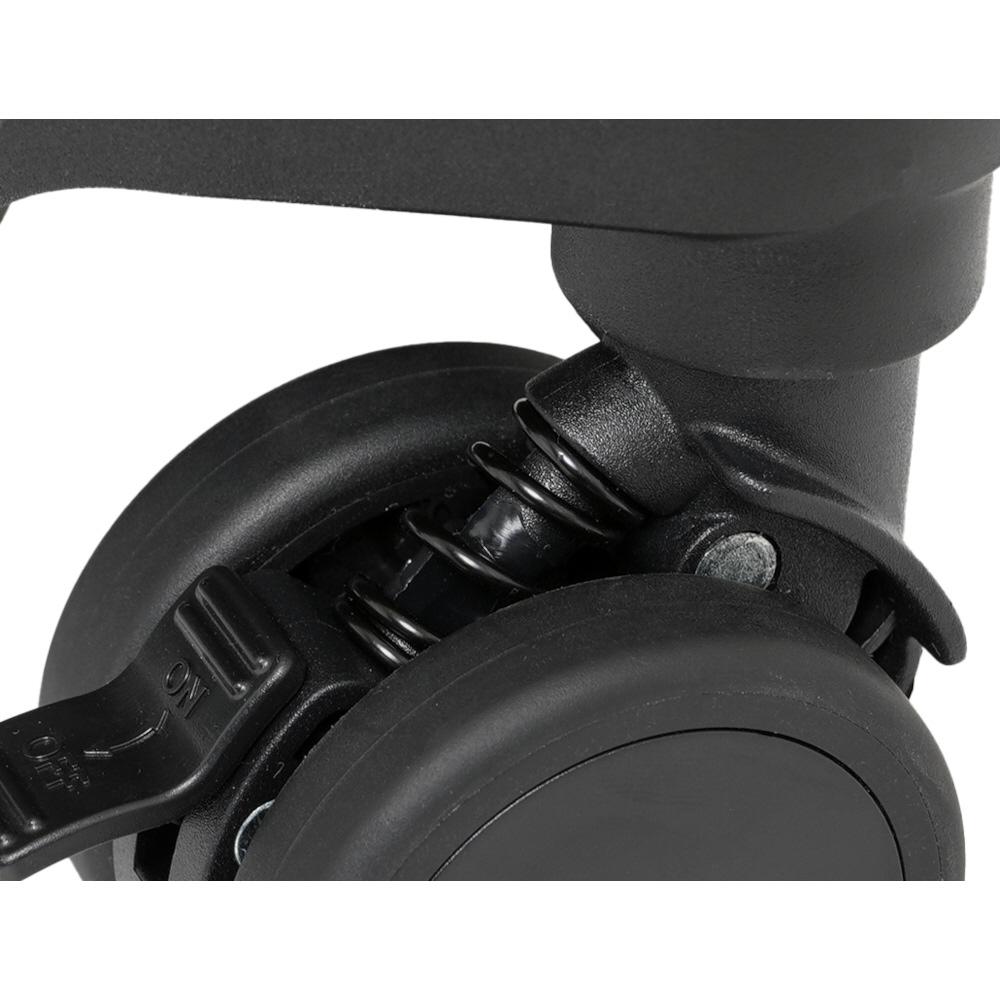 ■静かでスムーズな移動を可能にするサスペンションキャスターを採用し、足で簡単に止められるフットストッパー付き。
