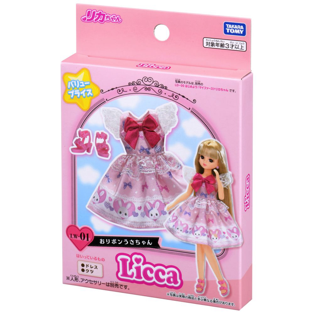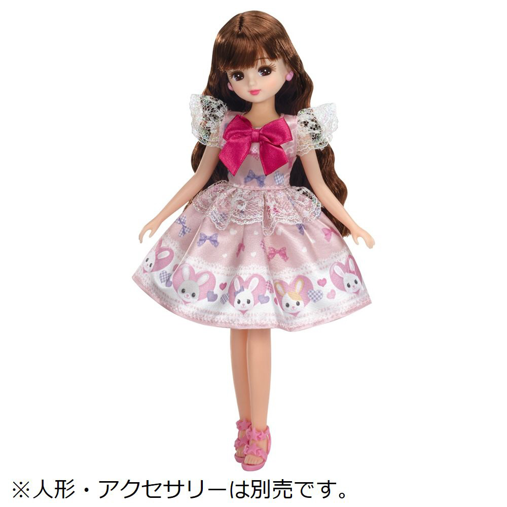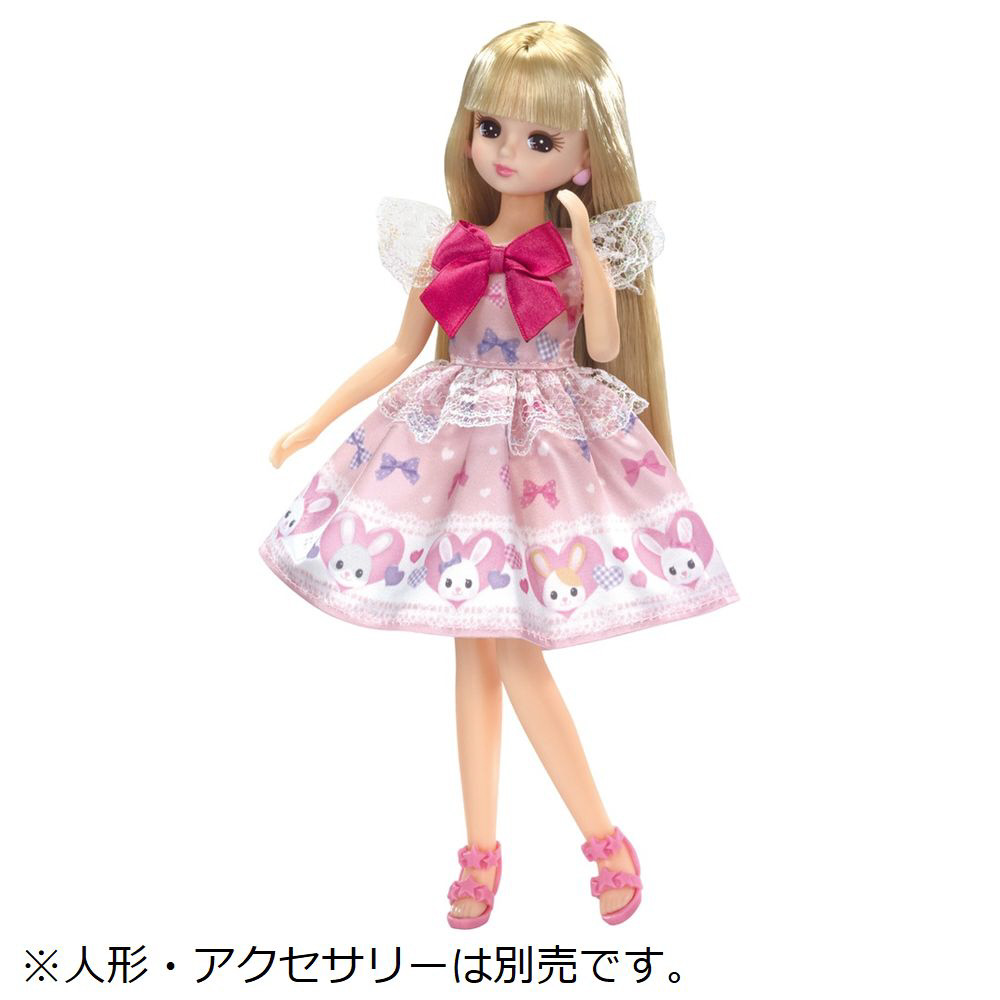 うさぎのデザインと大きなリボンがかわいいリカちゃんのワンピースです。