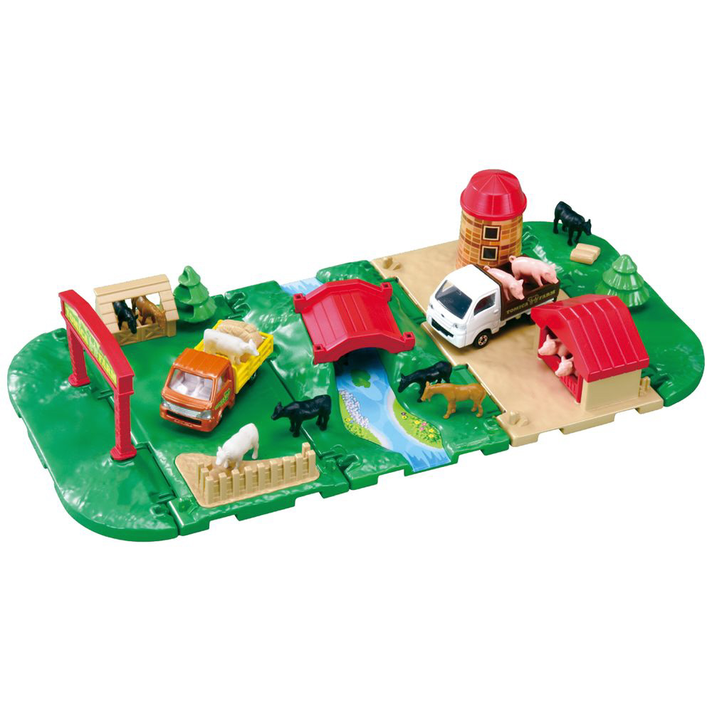 トミカ2台、新情景のトミカタウン牧場、ウシ、ウマ、ブタの動物フィギュアが計12体、エサ付属、セット内容盛り沢山で買ってすぐに遊べます!