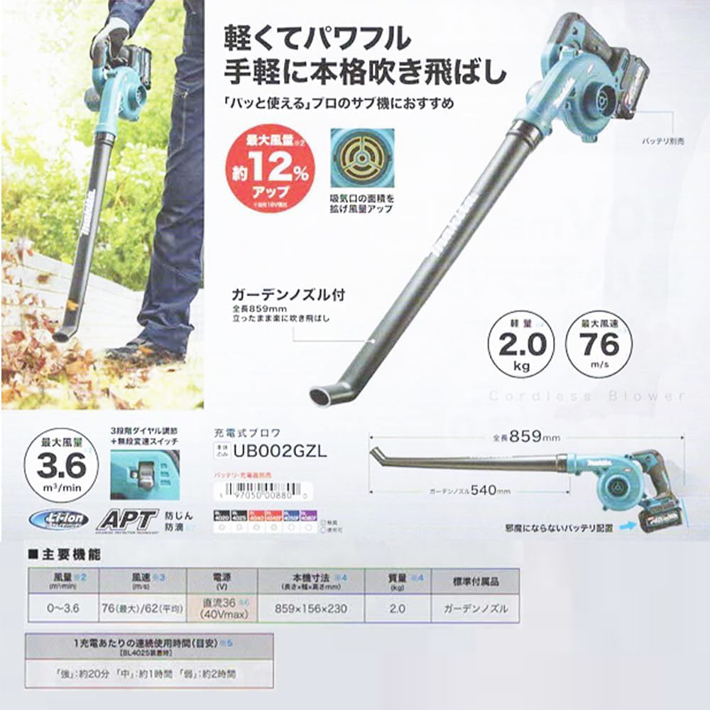 マキタ UB002GZL 充電式ブロワ  ロングノズルタイプ 40Vmax対応(本体のみ) ※バッテリ・充電器・ケース別売