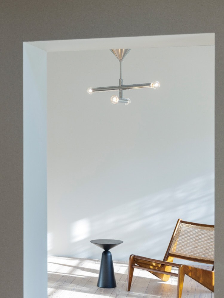 ■長短2本の円柱を組み合わせた直線的なデザインが特徴的なシーリングライト