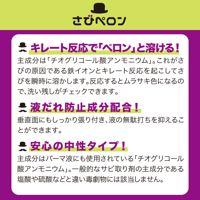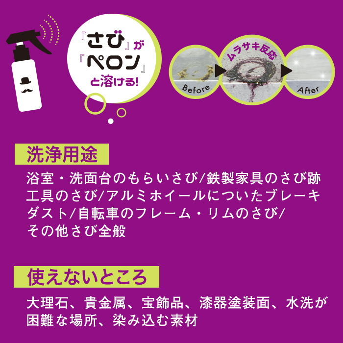 キレート反応でさびがペロンと溶ける!サビ用洗剤。