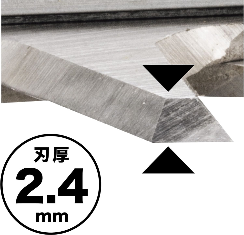 刃厚2.4mm。重負荷切断時の刃先のたわみを抑えます。
